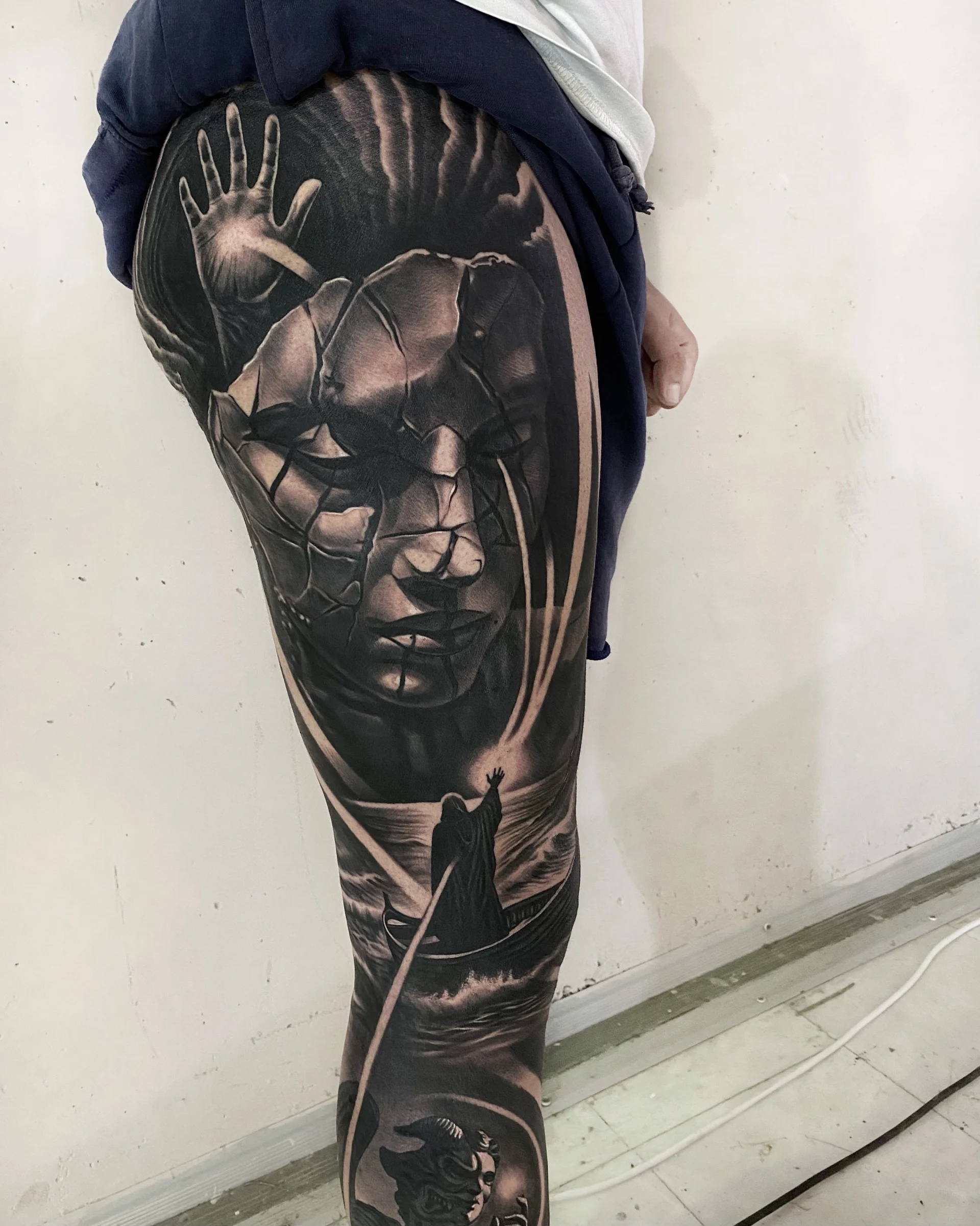 He is a detail freak and he always enjoys creating something out of nothing. One of the tattoos that he will never forget, is a game of tic-tac-toe, that played on a friends thigh, while actually tattooing him.